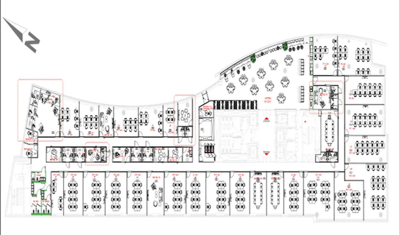 W budynku dostępne są powierzchnie biurowe od 501 m² do 3 495 m², co pozwala na elastyczne dopasowanie przestrzeni do potrzeb zarówno średnich, jak i dużych firm.